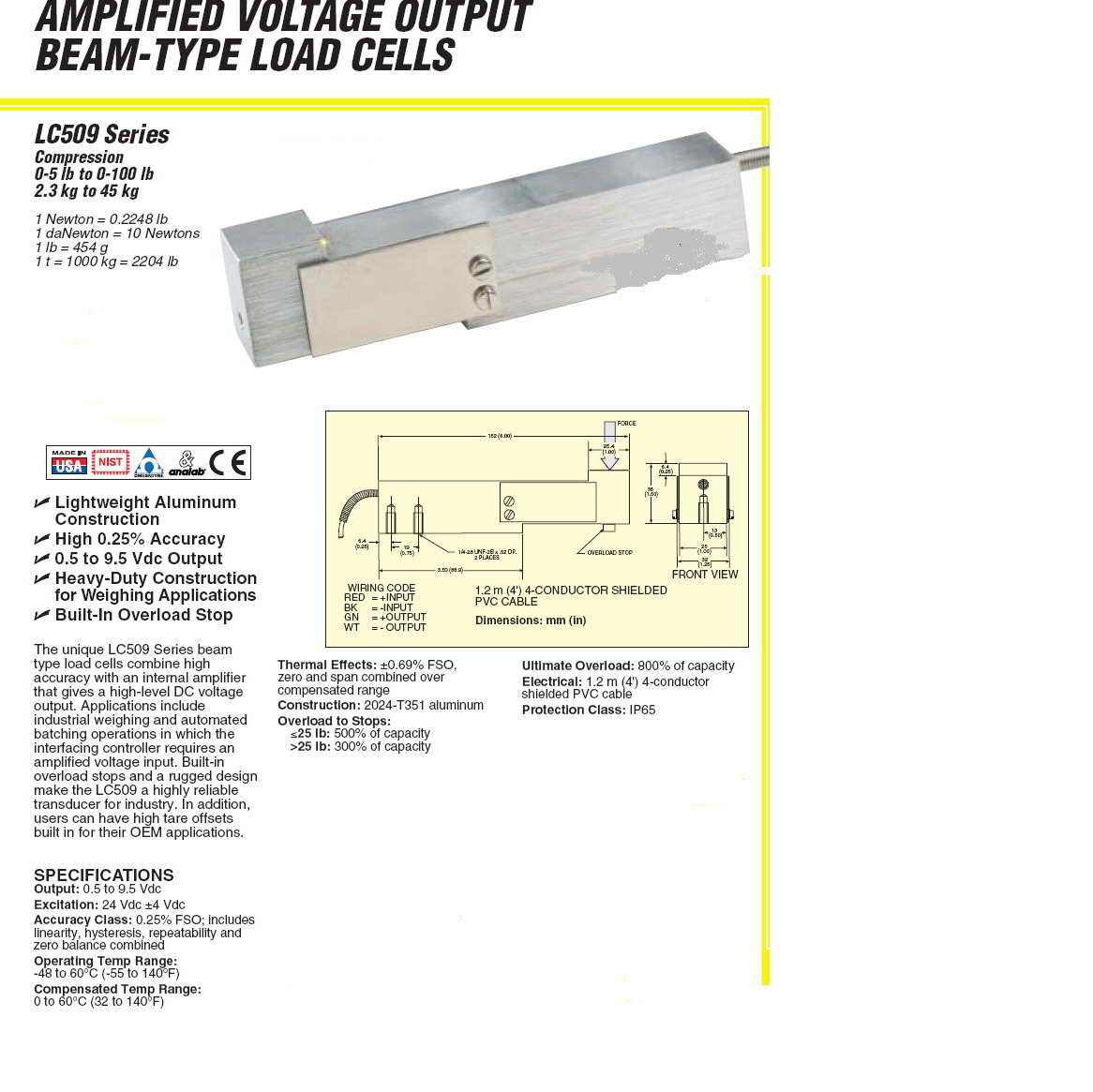 產(chǎn)品名稱:Omega LC509 懸臂梁傳感器(load cells)