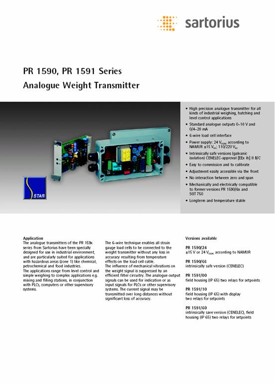 德國Sartorius稱重傳感器,變送器PR1591/24,PR1591/24