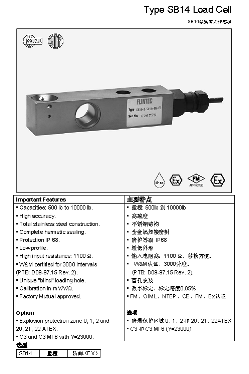 FLINTEC SB14 梁式稱重傳感器(load cells)