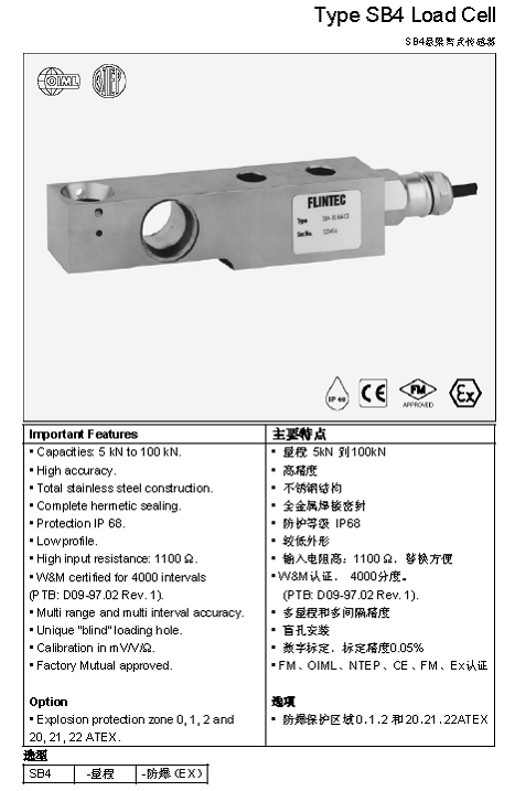 產(chǎn)品名稱:FLINTEC SB4 梁式稱重傳感器(load cells)