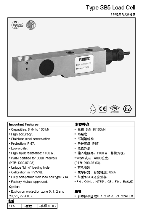 產(chǎn)品名稱:FLINTEC SB5 梁式稱重傳感器(load cells)