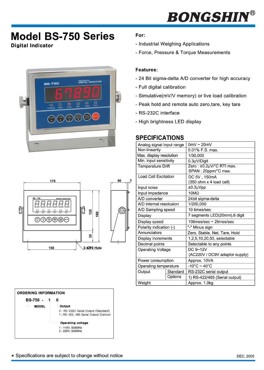 產(chǎn)品名稱:BS-750 顯示儀表(digital indicator)