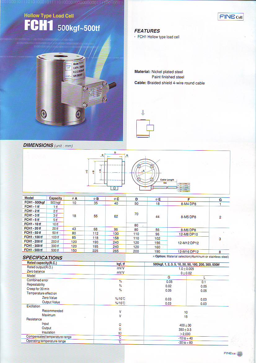 產(chǎn)品名稱:Fine FCH1 柱式稱重傳感器(load cells)