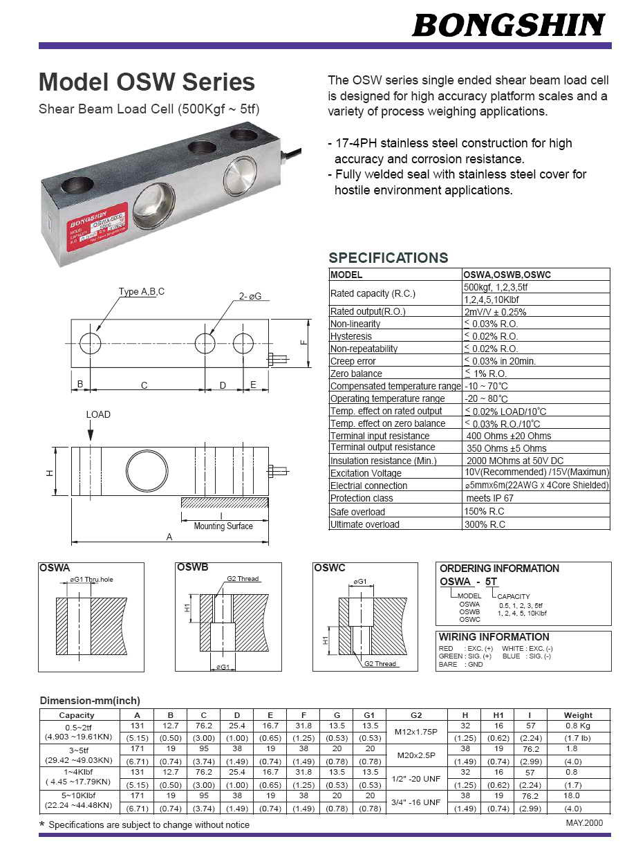 OSW 懸臂梁拉式傳感器(load cell)