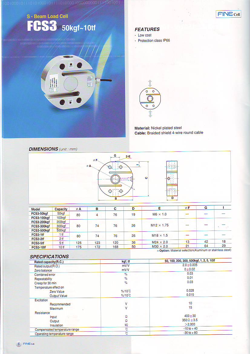Fine FCS3 S型稱重傳感器(load cells)