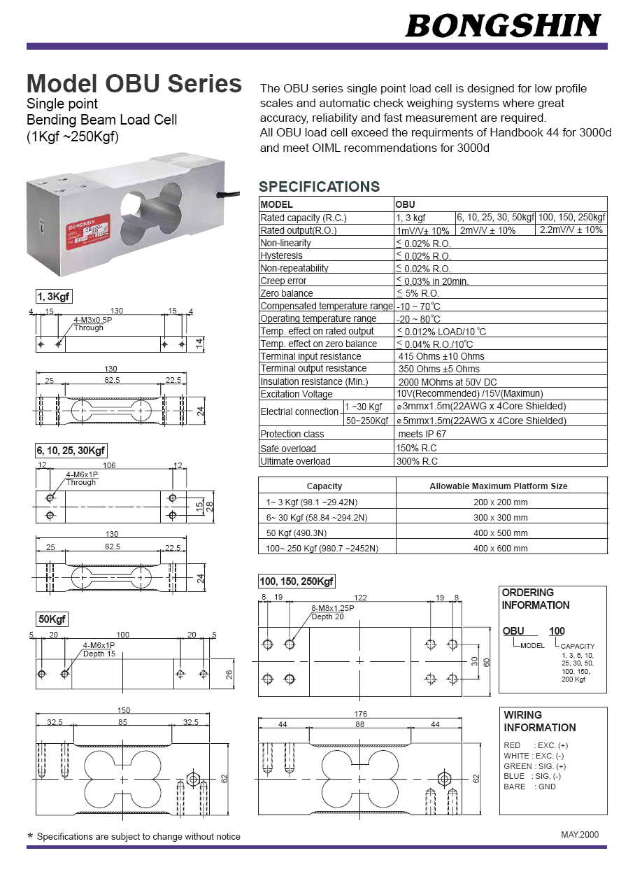 OBU 單點式稱重傳感器(load cell)