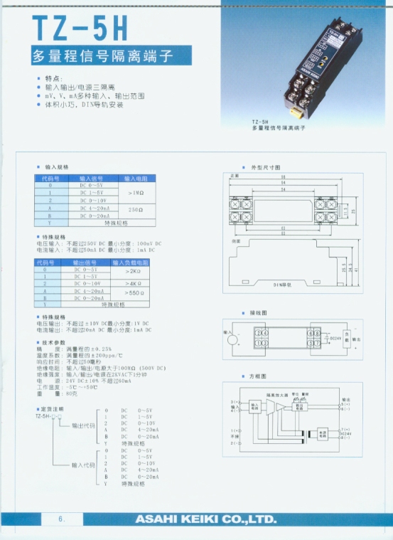 產(chǎn)品名稱:TZ-5H 多量程信號(hào)隔離端子(Accessories)