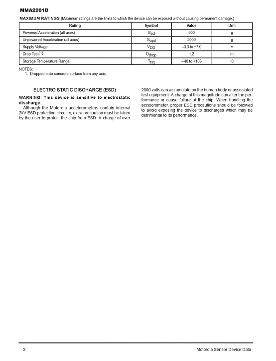 MMA2201D 加速度傳感器(accelerometer)
