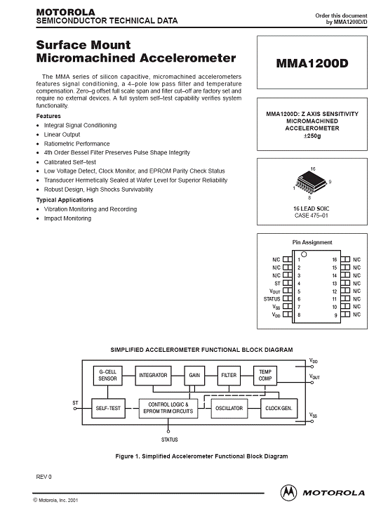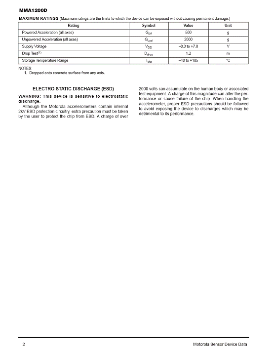 產(chǎn)品名稱:MMA1200D 加速度傳感器(accelerometer)