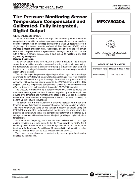 MPXY8020A 氣壓傳感器(sensor)