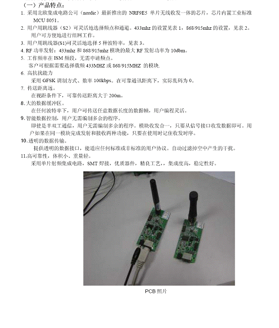 RF 無線數(shù)據(jù)傳送模塊使用說明(PCB module)