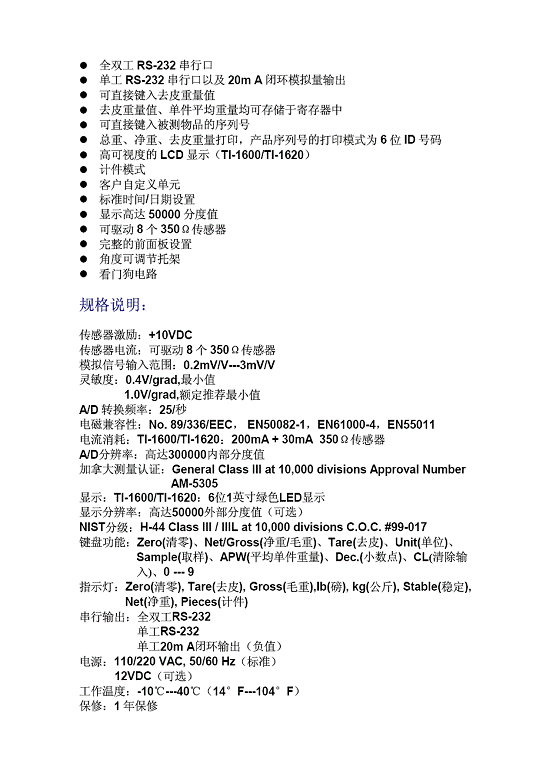 Transcell TI-1600 高精度顯示儀表(Indicator)