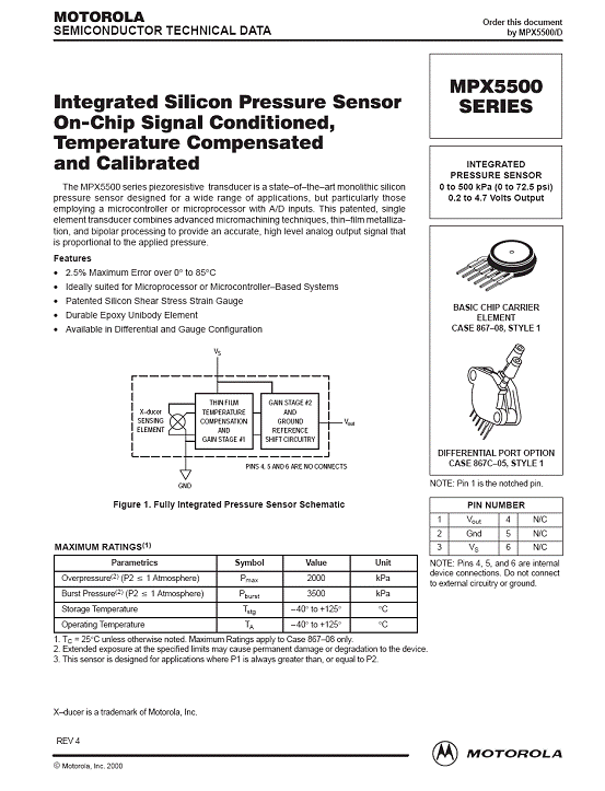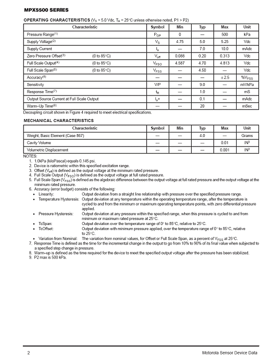 MPX5500 氣壓傳感器(sensor)