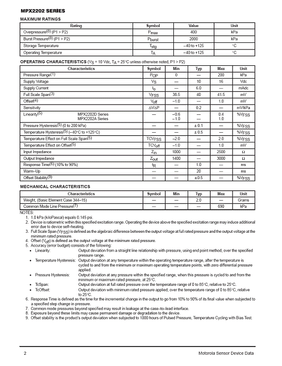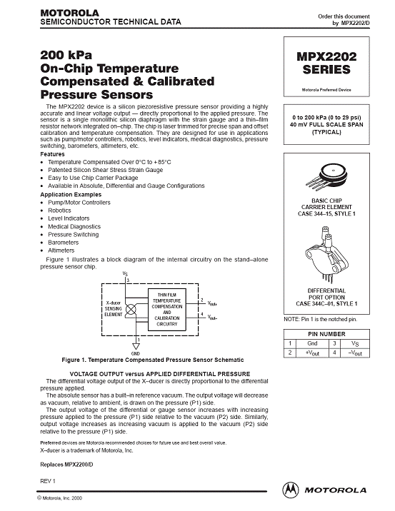 產(chǎn)品名稱:MPX2202 氣壓傳感器(sensor)