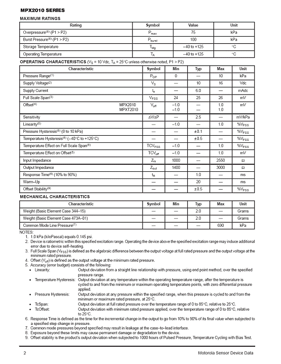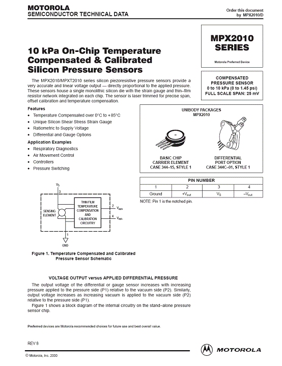 產(chǎn)品名稱(chēng):MPX2010 氣壓傳感器(sensor)