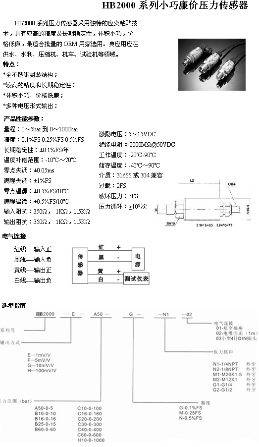 HB2000系列 小巧廉價壓力傳感器(pressure sensor):